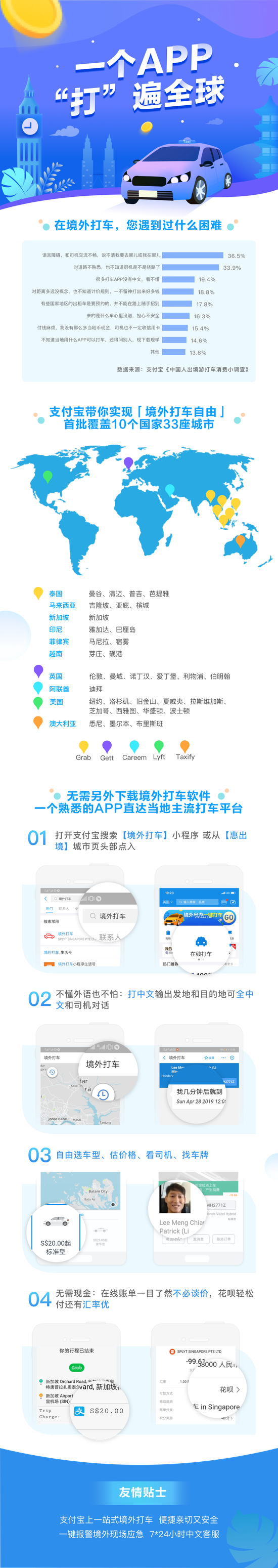 原标题:支付宝上线境外打车小程序 支持10个国家33座城市