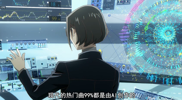 这样的剧情似乎是在讽刺某种现实偶像,但也是不可逆的事实。AI这种元素最让人直接联想到的还是虚拟偶像。初音未来、洛天依、乐正绫……层出不穷的虚拟偶像和相匹配的开放音源占据一定市场,未来的音乐领域是否会成为虚拟or真人的争夺也犹未可知。