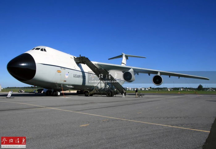 图为C-5货舱正面特写,该货舱长36米,高4米,宽6米,为头尾直通式,可一次性运载2辆M1坦克或6架AH-64武直或10枚“潘兴”战术导弹或270名步兵。