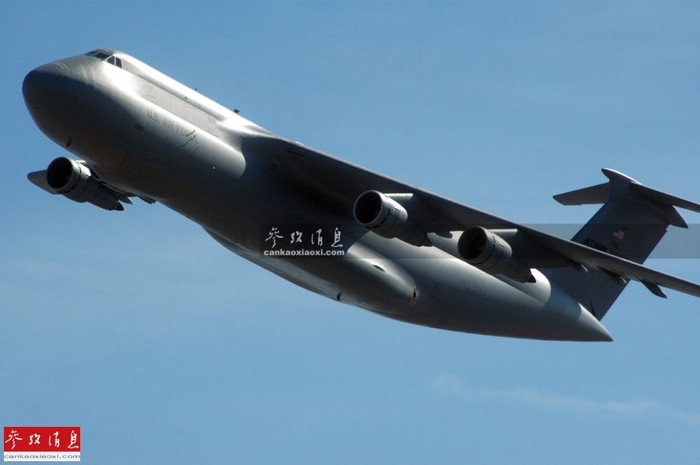 最新改进型C-5M全机长75.31米,翼展57.89米,机高19.84米,最大起飞重量418吨,最大载重122吨;巡航速度0.7马赫,最大航程4440千米(载重119吨时)。图为C-5运输机剖面图。