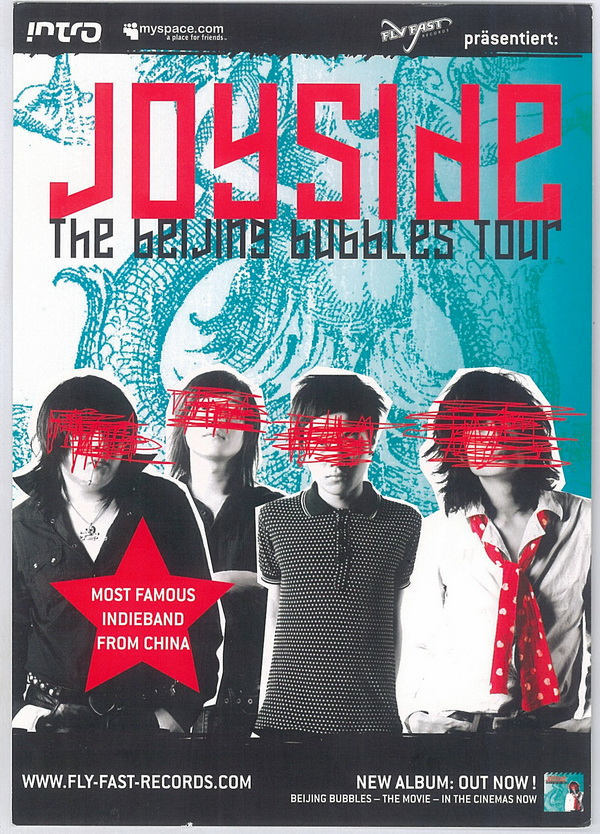 这样隆重地告别后,他们才发现还有合同未履约。于是不得不调整心情再赴欧洲巡演,同行者是活跃至今的Carsick Cars。在欧洲,Joyside成为少有的登上欧洲大型音乐节舞台的中国摇滚乐队。“你们的音乐和我们的在一个频道里。遮掉面孔,就一点也感觉不到你们的东方性。”有欧洲观众这样评价他们。
