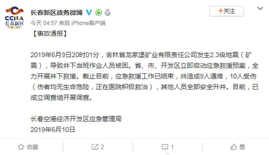 2019年6月9日20时01分,吉林省龙家堡矿业有限责任公司发生2.3级地震(矿震),导致井下当班作业人员被困。截止目前,应急救援工作已结束,共造成9人遇难,10人受伤。