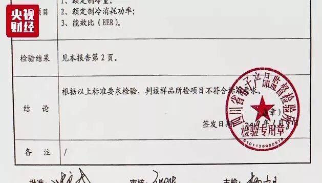 “经我司委托有专业资质的第三方机构检测验证,检测结论与我司检测结论一致,能效比和制冷消耗功率的检测结论均为不合格。”