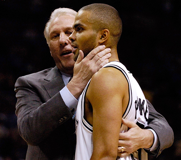 波波维奇在比赛里吼帕克是2001-2008年间的马刺保留节目,但其实训练时,帕克会粘着波波维奇问: