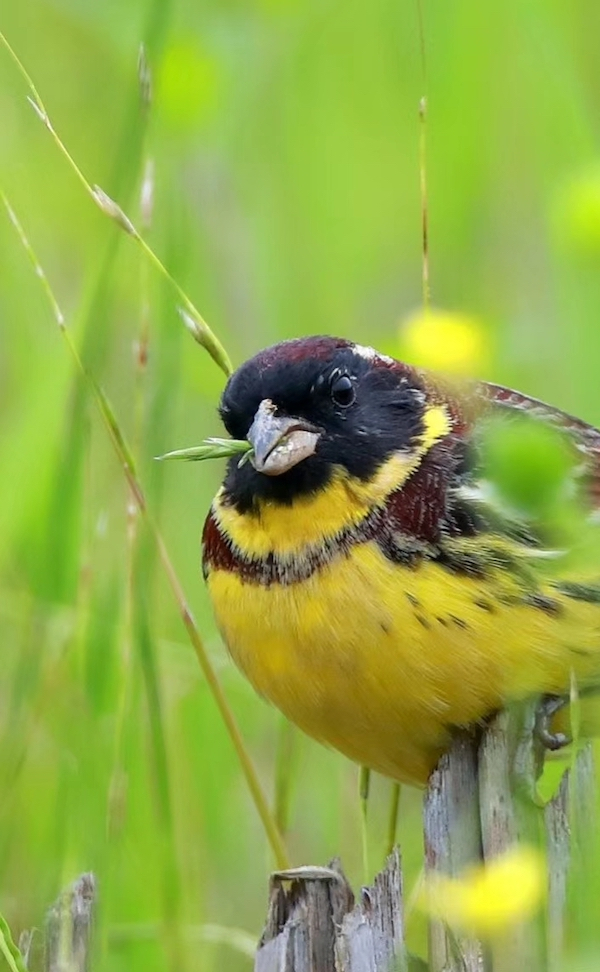 黄胸鹀,由于人为捕抓,IUCN级别连升两级,现为极危。