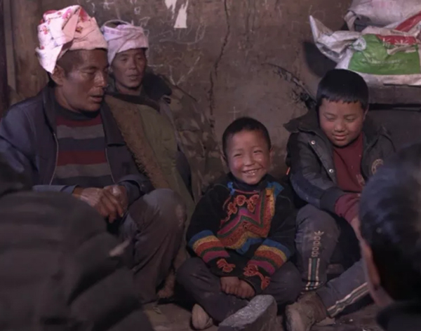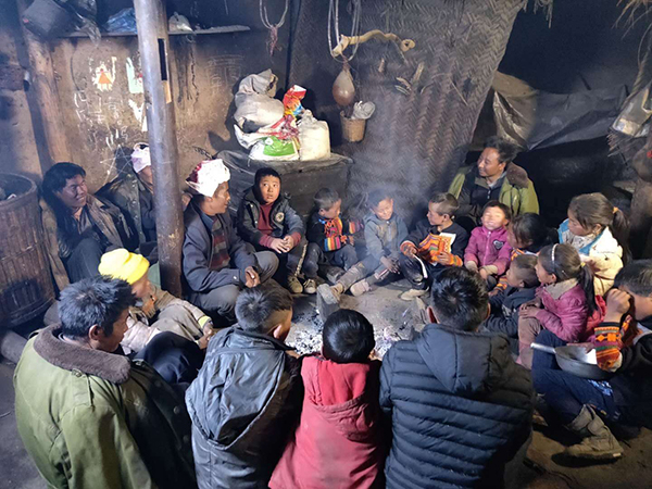 《克智少年》中,彝族人围坐在火塘边演说克智。