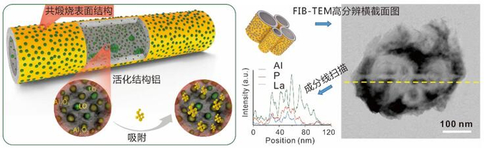 发现埃洛石和水铝英石的热演化与高岭石等类质矿物存在显著差异,获得了埃洛石高温下其结构产生纳米-氧化铝晶畴以及水铝英石产生莫来石相的高分辨透射电镜晶格像证据,为铝硅酸盐矿物热相变这一争议性问题的解释提供了新依据。通过研究埃洛石和高岭石等类质铝硅酸盐矿物的热致结构变化,发现其与某些盐类化合物共煅烧可显著促进其结构无序化,使结构铝在较低温度下即可发生“活化”。利用这一特殊性质,将上述矿物与稀土氧化物通过共煅烧复合,使结构铝高效活化并参与吸附反应,显著提高了其吸附容量。基于埃洛石的复合物对磷酸根阴离子的吸附容量达到了同类研究报道的最高值。基于上述工作,袁鹏等提出,铝硅酸盐纳米矿物在负载、吸附和脱附等界面反应性上具有特殊性,其结构本质在于管状、球状纳米结构中存在多类型的表面基团及其尺寸限制效应。上述工作显著深化了对铝硅酸盐纳米矿物这类特殊矿物的结构和表界面反应性的认知。