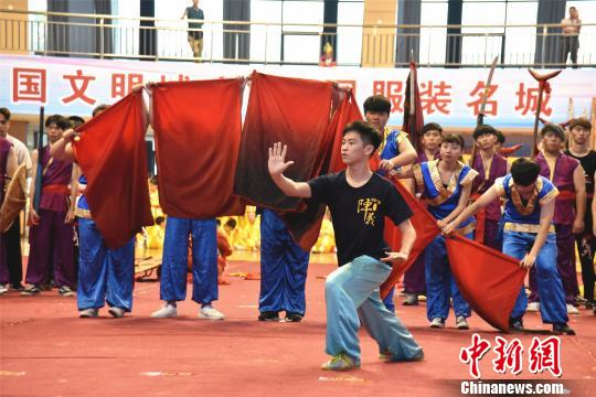 台湾创新演绎宋江阵,融入旗、扇及大鼓等多种道具。 陈龙山 摄