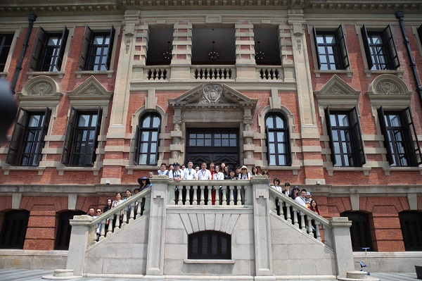 市民游客在上海总商会旧址前留影