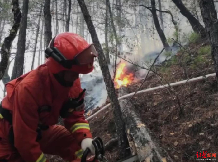 火灾发生后,四川森林消防总队凉山州支队100名森林消防员以及当地1000余名地方扑火队员开展扑火工作。