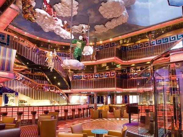星梦邮轮上的娱乐设施众多,白天有各种水上娱乐活动,比如水上滑梯乐园、综合运动场、攀岩墙等。晚上可以去星座剧院看魔幻的表演,魔术、杂技等演出自然是精彩非凡。在甲板上,你可以看到DJ领舞、大堂的假面舞会和激光烟火秀等。