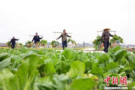“芥菜小镇”华容县三封寺镇农家采摘芥菜。 张璇 摄