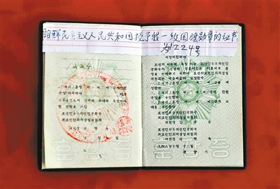 在蔡兴海的家中,记者见到了1953月6月1日由司令员许世友签发的《中国人民志愿军第三兵团记功命令》。其上说明:“经志愿军政治部批准,在上甘岭战役中创有特殊功勋、对作战胜利起有决定作用、堪为全军榜样与旗帜的黄继光等五位同志改记特等功或改授英雄称号。”其中,“十五军黄继光改授特级英雄称号”“十五军邱少云改记特等功一次并追授一级英雄称号”“十二军三十一师九一团八连四班副班长特等功蔡兴海授予二级英雄称号”等。