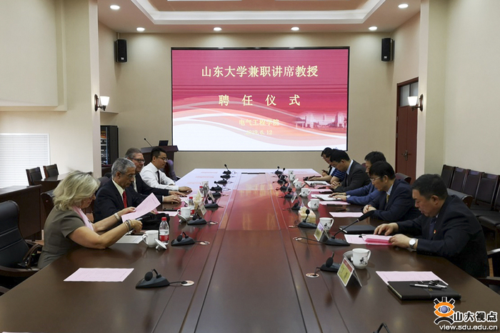 仪式上,韩圣浩代表学校诚挚欢迎Jose Rodriguez院士、Ralph Kennel教授加盟山大,希望两位讲席教授能带领团队成员潜心研究,取得有国际影响力的学术成果,为山东大学电气工程学科建设作出贡献,学校也将提供良好的环境和支持。Jose Rodriguez院士、Ralph Kennel教授对受聘山大兼职讲席教授感到十分高兴,表示将和山东大学师生一起努力,共同开展学科建设、科学研究、师资培养等工作。聘任仪式由电气工程学院党委书记刘相宜主持。学校人事部(人才办)、电气学院相关负责人参加仪式。