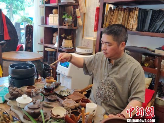 近日,中新网记者来到黄典淦位于福州市金山的藏缸普洱茶店,拜访这位“与众不同”的茶人。