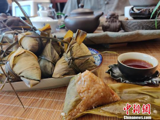 将螃蟹脚普洱茶与粽子大胆结合,推出健典普洱粽。 叶秋云 摄
