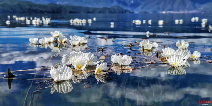泸沽湖是四川省盐源县和云南省宁蒗县共同管辖,这种小花生长在湖泊之中,对水质的要求极高,因此,这朵朵白花也印证了泸沽湖水的干净清澈。