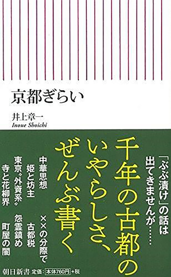 2015年,《厌恶京都》(《京都ぎらい》)一书在日本出版,销售量逾26万册,在京都人中引起了波澜。本书作者井上章一现任国际日本文化研究中心教授,出身京都市右京区,主要研究建筑史、性风俗史。