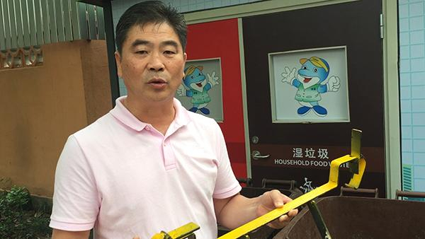 担心倒湿垃圾弄脏手,是居民在垃圾分类过程中时常面对的一个困扰。“神器”发明者,上海宝谊环境卫生服务有限公司车队长陈华在日常工作中留意到了这个细节。