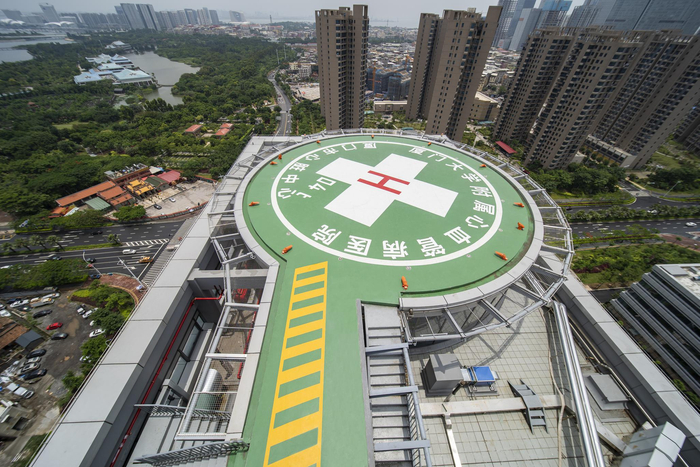 厦心五缘湾新址设计上精益求精,一切都以高效、安全满足心血管病患者的需求为核心:一楼急诊科内设急诊导管室,为国内少有,患者若需急诊介入治疗,无需院内转运即可手术,争分夺秒开通堵塞的心血管;两间杂交手术室可实现心内、心外、超声、麻醉等多学科协同作战;顶楼直升机停机坪更打通了空中抢救通道,患者3分钟无缝“飞入”手术室……