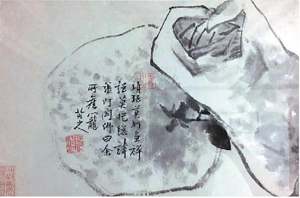 “父亲经常跟我说,八大山人的画画得很简练,像这朵荷花很饱满,茎上还有一根断了的丝。为了这幅画,‘文革’期间还被批判,因为八大山人是明朝的遗老,说画上有一根断了的丝,叫什么藕断丝连,批判我爸爸说喜欢八大山人是对现状的不满。”唐逸览说,“文革”期间,很多作品都被抄走,这四幅八大山人的画因悬挂在墙上,所幸没有被抄走,“文革”后期落实党的政策,也还回来一批画。