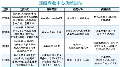 规划明确提出调整优化商业中心体系,在全市构建广域级、区域级、地区级、社区级四级商业中心体系。