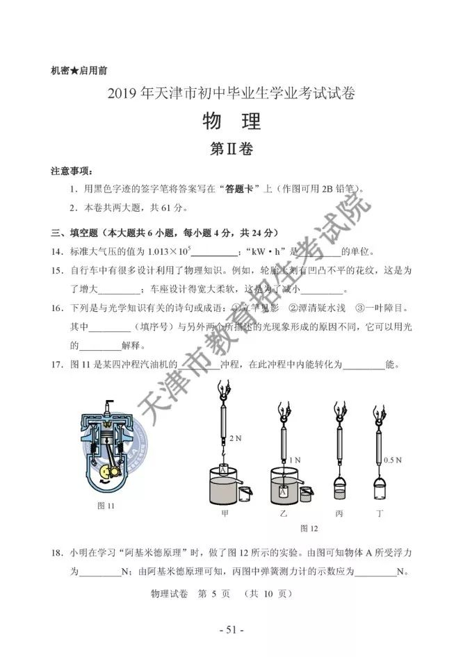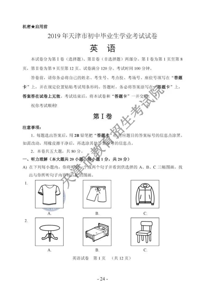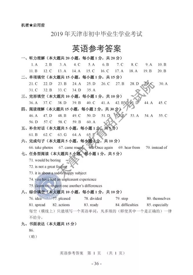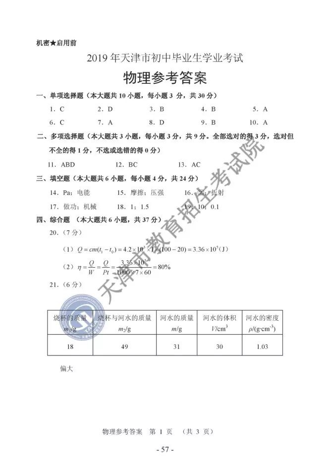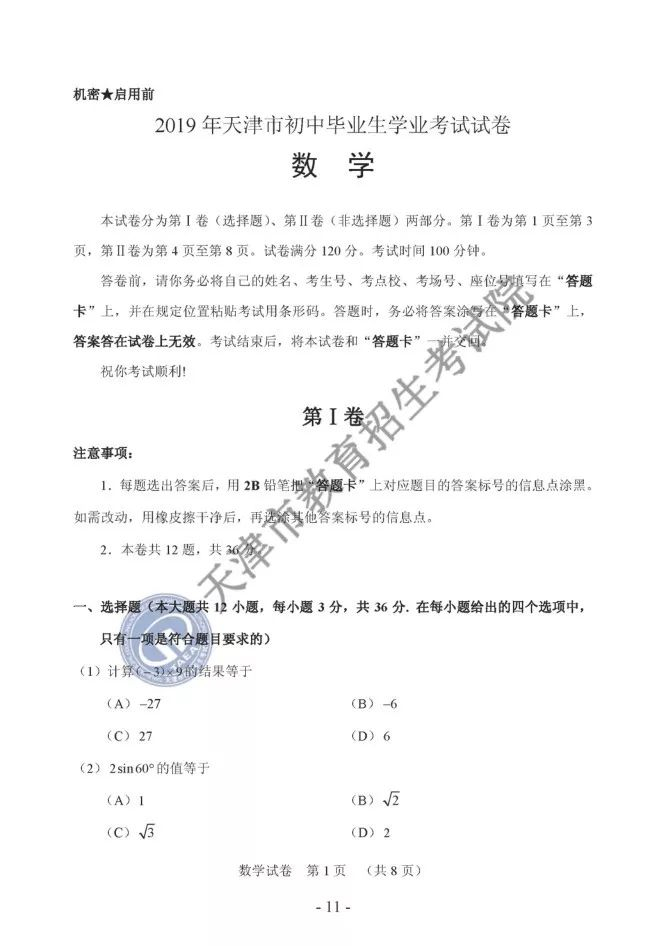 原标题:最新|2019年天津市初中毕业生学业考试,试卷及参考答案发布