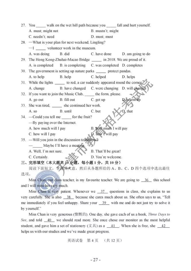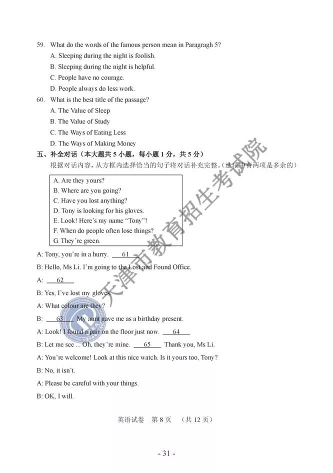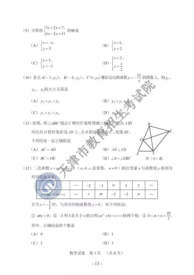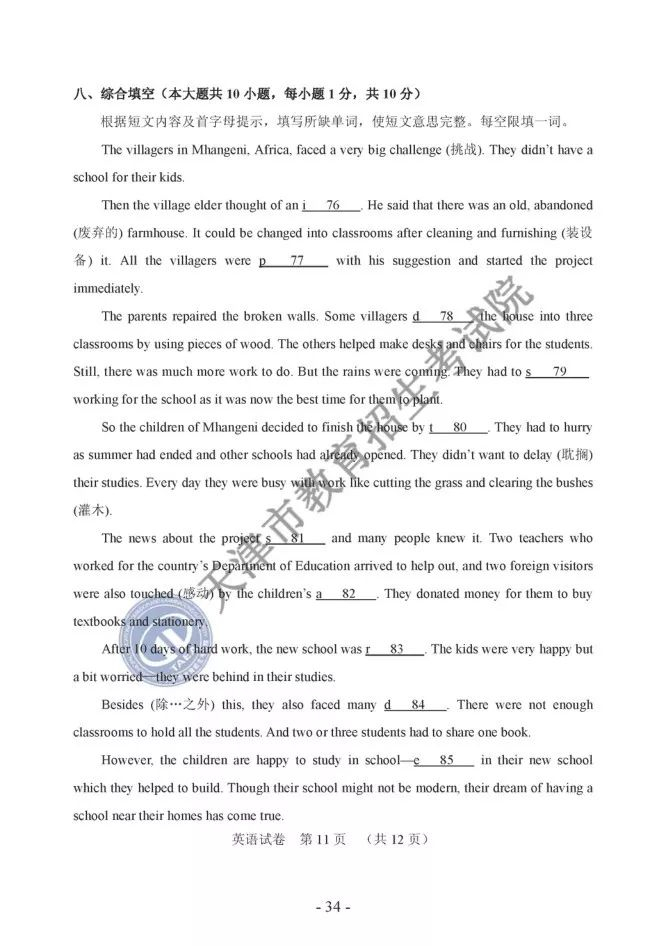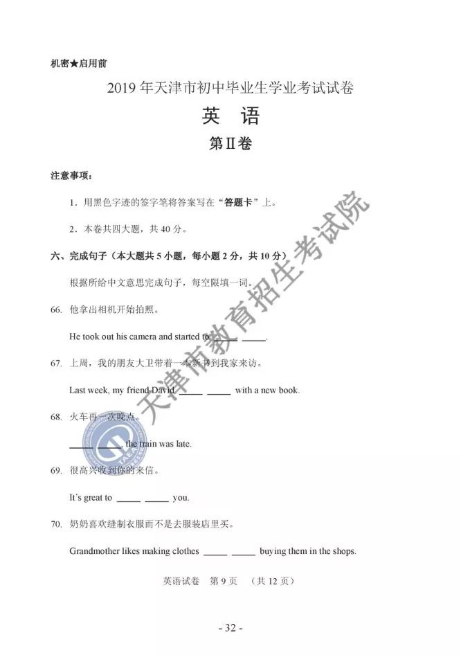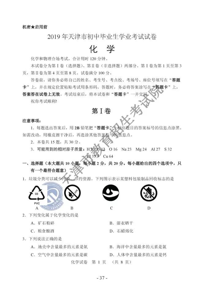 原标题:最新|2019年天津市初中毕业生学业考试,试卷及参考答案发布