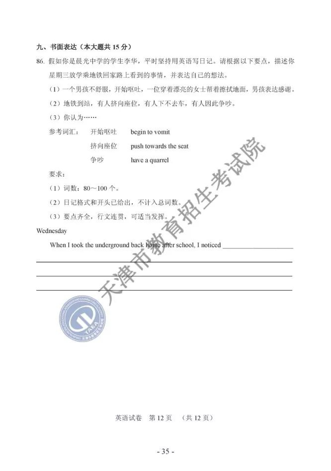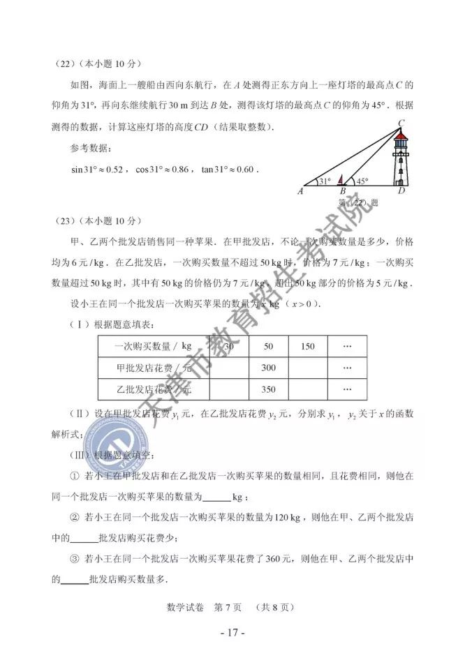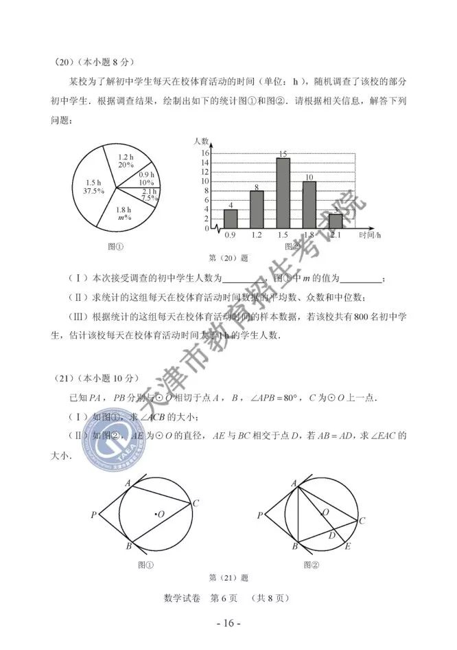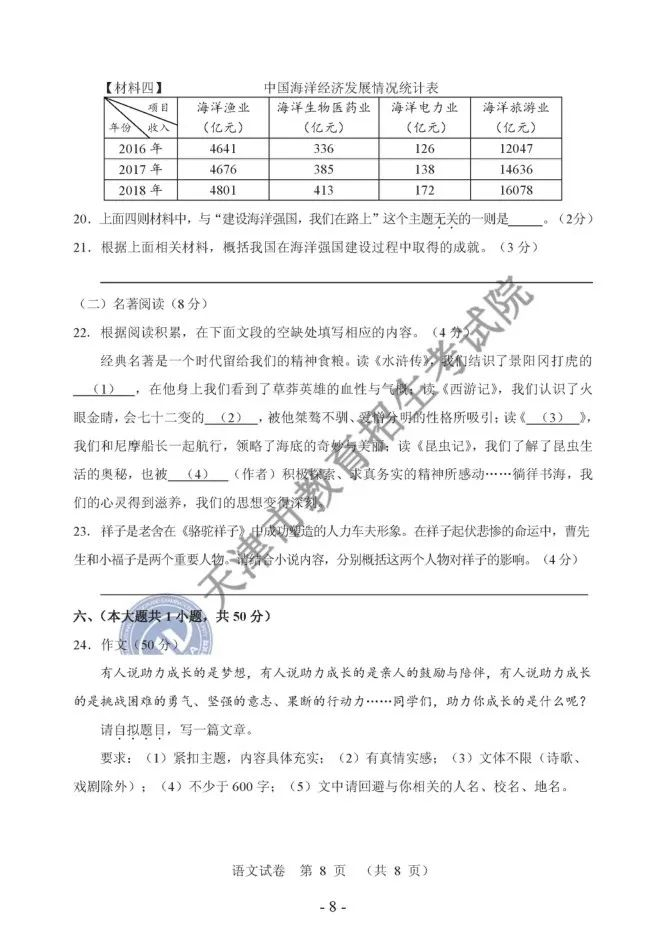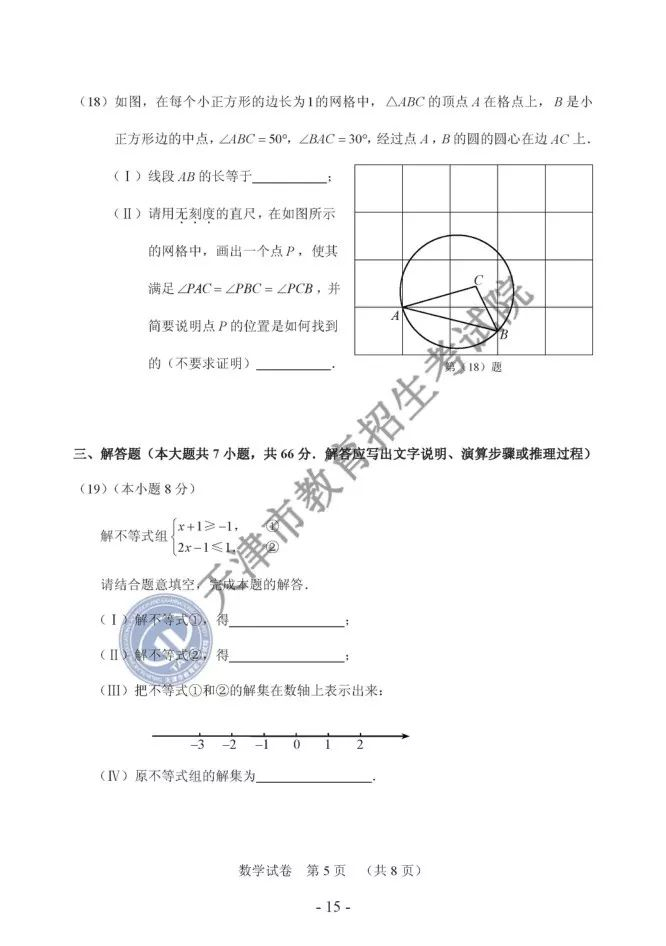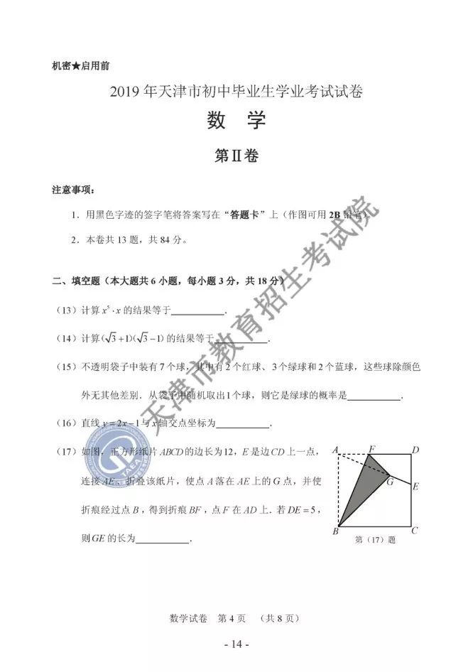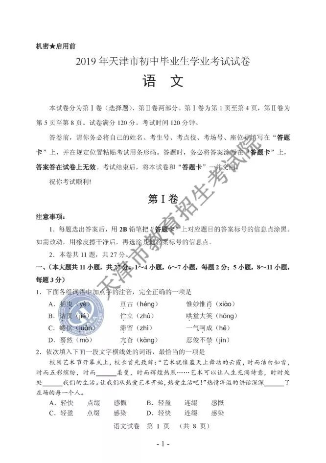 最新|2019年天津市初中毕业生学业考试,试卷及参考答案发布