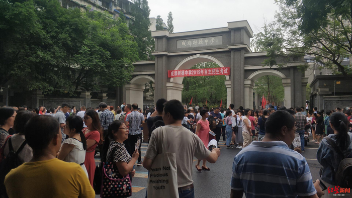 6月16日上午8: 30,成都树德中学2019年自主招生考试正式开考,考试时间为16日全天。7: 30,考生就已陆续进场,在操场等候。考场外家长云集,道路两侧被封,禁止机动车入内,场面堪比高考。由于周围人数太多,红星新闻记者手机一度失去了信号。