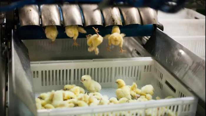 我们都知道在禽类工业中鸡分为肉鸡和蛋鸡。其中,在蛋鸡中,不会下蛋的公鸡被认为没有经济价值。因此,刚出生的小公鸡就会被直接送进绞肉机,作为饲料喂给其它母鸡。