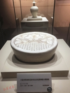历史上,山西古陶瓷一直因周边窑业的影响而明珠蒙尘、鲜为人知,甚至山西陶瓷还会被冠以其他窑的名字,比较知名的就是北京故宫博物院收藏的一件河津窑瓷枕,枕上有乾隆御题诗一首:“瓷中定州猶椎轮,丹青弗藉传色粉。懿兹芳枕质朴淳,蛤粉为釉铺以匀。铅气火气净且沦,粹然古貌如道人。通灵一穴堪眠云,信能忘忧能怡神。至人无梦方宜陈,小哉邯郸漫云云。”在这首诗中,乾隆对珍珠地刻花瓷枕称赞有加,但是他却赞错了对象,误认为其为河北定窑白瓷。后经考古认证,这件瓷枕出自山西河津窑。看来河津窑的美名,在乾隆时,就已经湮没在历史的长河中而不为人知了。