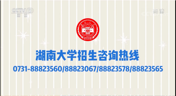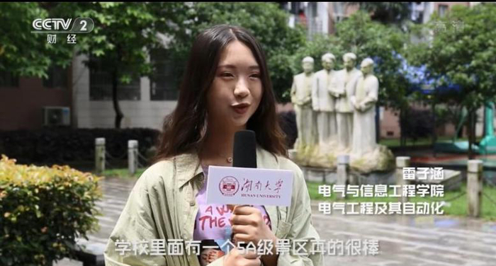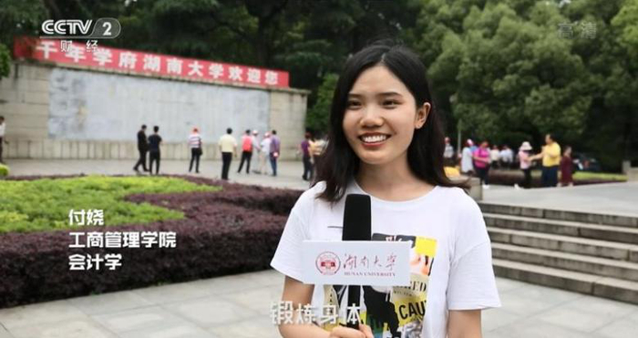6月17日,中央电视台《第一时间》节目“高招进行时”专栏走进湖南大学,通过视频短片、MG动画、街头采访等形式对湖南大学基本情况、2019年湖南大学本科招生政策、在湖南大学学习生活情况等内容进行了专题报道。