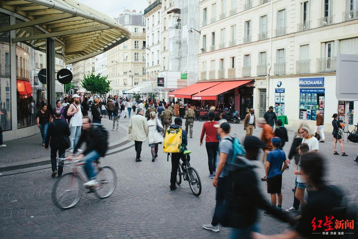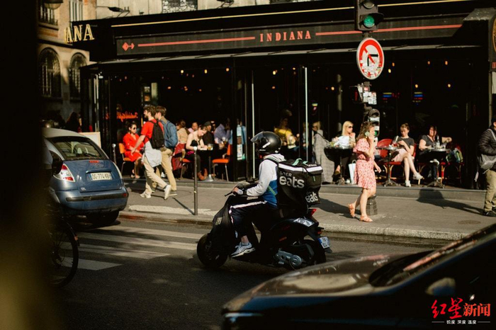 在法国,外卖产业已经成了一个数十亿欧元的生意,美国共享出行巨头优步、英国外卖平台Deliveroo、西班牙外卖平台Glovo和其他法国本地的外卖公司之间发起了激烈竞争,抢夺着市场和用户。这种竞争不只是公司之间的生存战,也挤压了外卖送餐人员的收入,甚至让他们开始“倾轧”更底层的人。