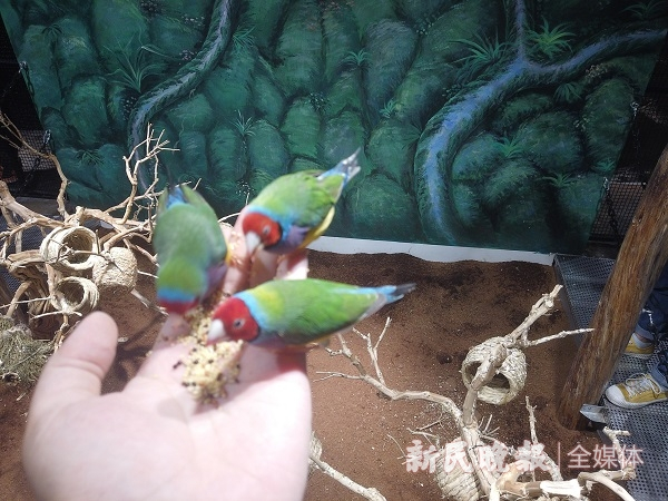 你可以抓起一把小米握在掌心,吸引树上的小鸟停留驻足,当小鸟的眼睛看着你的时候,千万不要放下手掌,你的善意会让它们亲近你,运气好的话会有四五只小鸟同时啄食掌心的小米!“大嘴鸟”小爱也同样贪吃,一颗蓝莓就能完成互动体验,当巨大的鸟嘴凑过来吃东西的时候,内心总会泛起一种甜蜜的感动。当讲解员述说它们的喜好和行为习惯时,看着眼前真实的小动物们,相比教科书中的呆板形象可有趣多了。