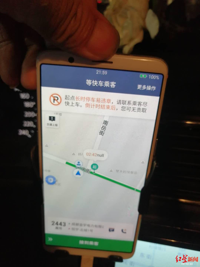 收到罚单的王师傅有些委屈,他表示平时驾驶过程中遇到道路上有不允许停车或道路管制等信息,平台导航都会进行语音和文字提示,避免司机违法。他向红星新闻记者出示了在其他接客过程中,导航进行的提示,上面写着“起点长时间停车易违章,请联系乘客快上车。”