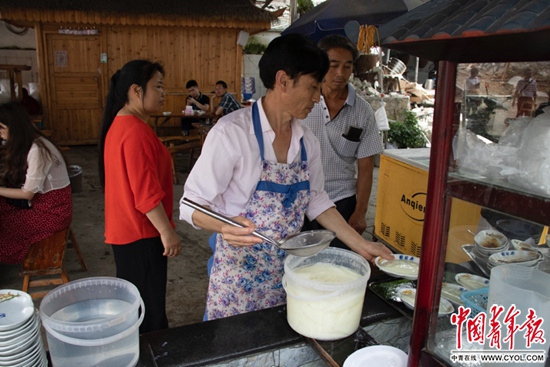 蒋兰生在双河,长在双河,葡萄井凉糕伴随着她的成长。和外地食客不同的是,她相信葡萄井不会枯竭,自己吃的这碗凉糕也不会是“绝版”,“葡萄井的水会回来的”。