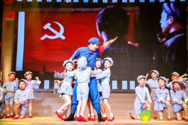 “红星闪闪放光彩,红星灿灿暖胸怀,红星是咱工农的心,党的光辉照万代,……” 青年舞蹈家黄豆豆踏着他熟悉的旋律,与孩子们一起表演着舞蹈《闪闪红星》,台下的观众们则挥舞着国旗和着旋律一起互动。