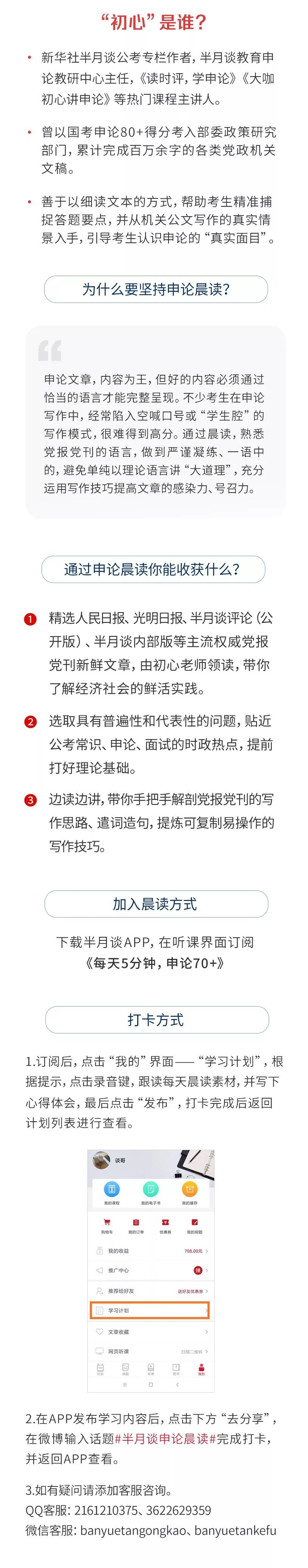 1.精选人民日报、光明日报、半月谈评论(公开版)、半月谈内部版等主流权威党报党刊新鲜文章,由初心老师领读,带你了解经济社会的鲜活实践。