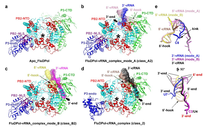 此项工作首次系统性地研究了流感病毒聚合酶与不同RNA启动子的相互作用机制,阐明了RNA启动子结合构象在合成不同RNA时所发挥的作用,并提出了聚合酶合成RNA起始阶段的工作模型,推动了人们对流感病毒聚合酶调控不同RNA合成机制的理解,为抗病毒药物开发提供了新靶点。