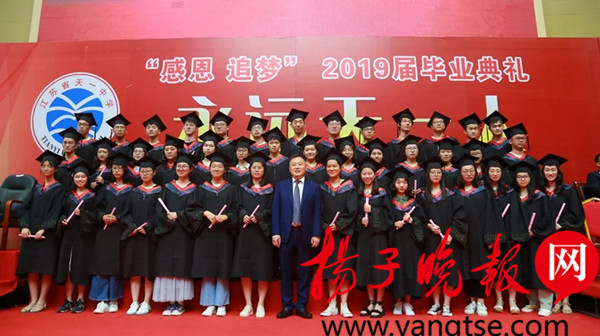 扬子晚报网6月19日讯(记者 丁波)今天,在全国著名高中——江苏省天一中学,举办了一场充满庄严、隆重、喜庆的毕业典礼。在2019届高三毕业典礼上,天一中学朱卓君校长为全体高三毕业生上了一节精彩的数学公开课。身为全国模范教师、江苏省数学特级教师的他用三道数学公式寄语毕业生,讲述了从一到无穷大的人生。