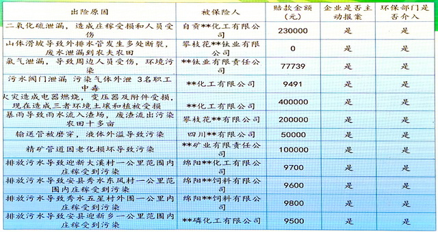 部分“环责险”出险案例。资料来源:生态环境部环境与经济政策研究中心