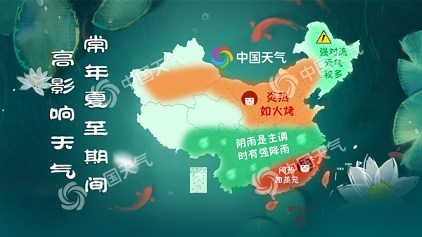 夏至是二十四节气中最早被确定下来的节气,夏至这天,北半球白天最长,夜间最短,代表炎热将至,常见的有强对流、梅雨、以及高温天气等。
