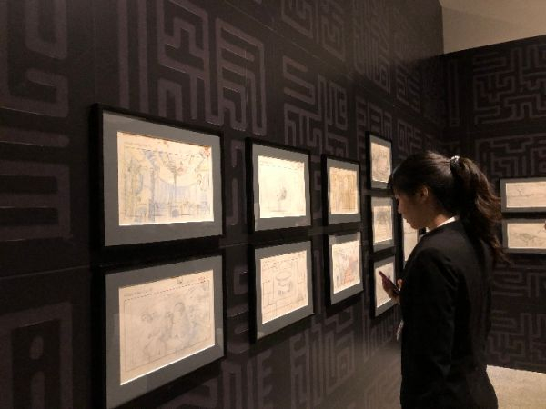 日本吉卜力动画手稿台北展现场,宫崎骏等人创作的1400幅手稿真迹与观众见面。(资料图片)