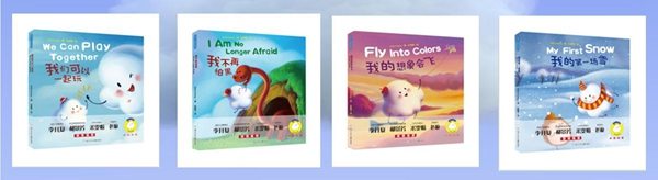 “云⾖⼉好好玩”系列双语绘本主⾓是⼀个拟⼈化的云朵“Cloudee云⾖⼉”,每册故事再现了3-6岁年龄段的孩⼦们常见的诸如“交朋友”“怕⿊”“害怕⽆聊”等问题。