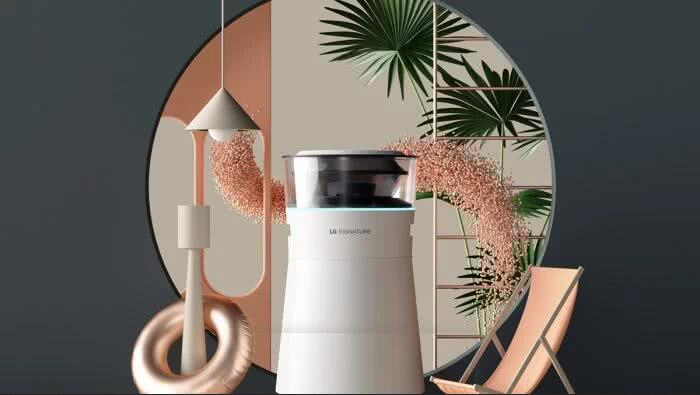 同时,宣传图上左边的绿色椅子和右边的吊灯也来自他的另外两个设计图,这两张图是受韩国企业LG委托创作的。