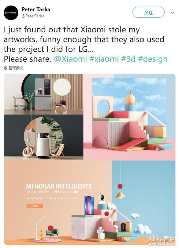 经过调查艺术家Peter Tarka对小米西班牙网站上滥用其作品的评论,小米确定一位设计师未经许可使用了Peter Tarka的设计。小米已第一时间下架了该内容并决定立即解雇这名员工。我们真诚地向Peter Tarka道歉,并对我们审核过程中的失误致歉。这位员工的行为违背了我们公司尊重知识产权的价值观,我们也将进一步加强内部审核流程,以防止此类情况再次发生。我们已经联系了Peter Tarka本人,向他致歉。