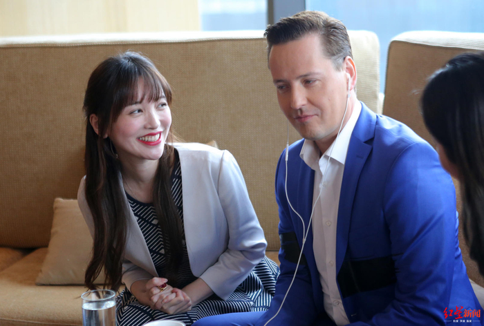 有意思的是,现场还有一位特别的“粉丝”,在远处带着笑意盯着维塔斯。她叫金莎,当年与林俊杰合唱的那首《被风吹过的夏天》风靡一时。“维塔斯老师您好,我是您多年的粉丝,特别喜欢你,这次终于有机会与您见面。”金莎见到偶像,卸掉明星的光芒,一脸的羞涩。“您的高音特别棒,我这方面不太擅长,这是我的新歌,是一首爱尔兰民谣,填了中文,想请您听一听。”寒暄过后,维塔斯戴着耳机仔细聆听。虽然语言不通,但是优美的旋律瞬间打动了维塔斯。他还专门摘下耳机问身旁的翻译,“是不是一首情歌?非常好听。”至于金莎所提及的学高音,维塔斯让她不要着急,甚至承诺她可以来俄罗斯学习。“实在不行,我可以和你一起唱,帮你唱高音。”两人之间的交流非常愉快,在与偶像维塔斯谈笑间,金莎多次羞涩捂脸。在金莎离开后,维塔斯偷偷告诉红星新闻,“我今年巡演的嘉宾已经找到了,就是金莎。”