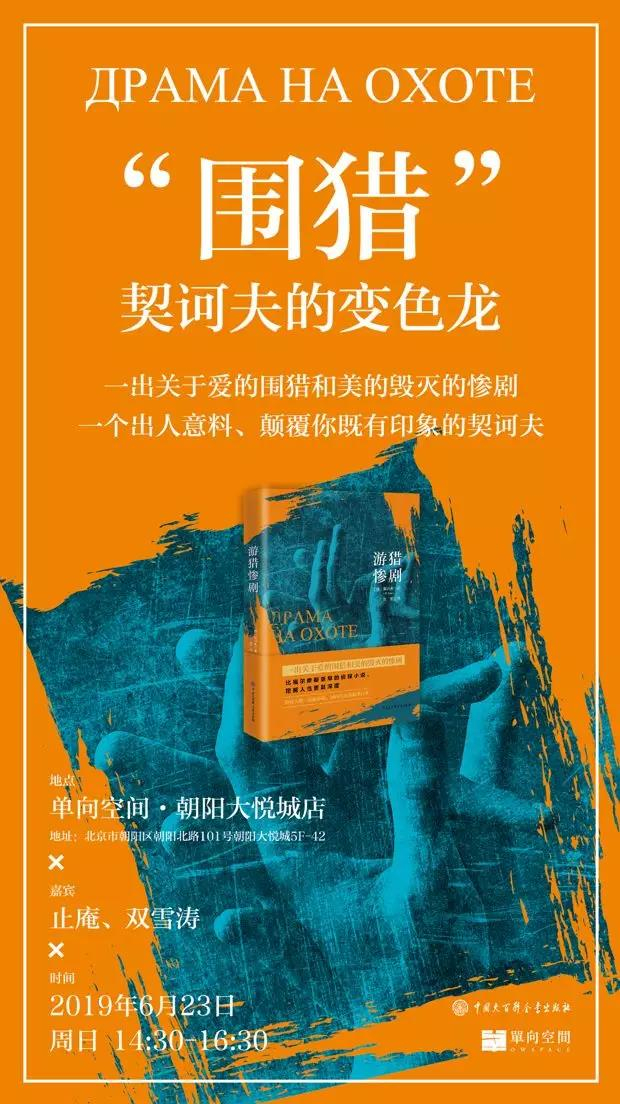 中国大百科全书出版社于2019年重磅推出“私人阅读”文学系列,其中《游猎惨剧》作为契诃夫创作生涯中唯一的长篇作品,首次出版单行本。本书是契诃夫在1884-1885年间所写的一部长篇侦探小说,讲述了一个关于爱的围猎和美的毁灭的“惨剧”。6月23日,作家、学者止庵将与青年作家双雪涛做客单向空间·朝阳大悦城书店,就《游猎惨剧》展开对谈,并与现场书友聊聊他们心中的契诃夫。