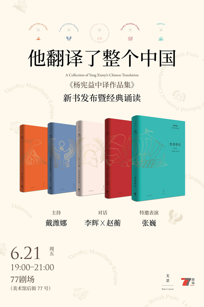 6月21日晚,《杨宪益中译作品集》新书发布会暨经典诵读会将于北京77剧场举行,邀请读者朋友一同走近杨宪益先生的人生,感受他为人治学的风采,领略其译作历久弥新的魅力。